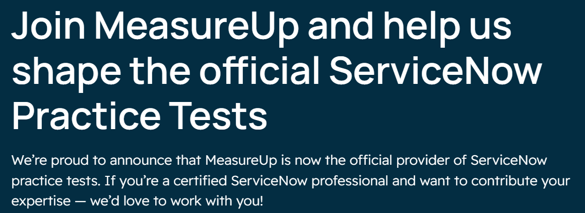 Join MeasureUp and help shape the official ServiceNow Practice Tests