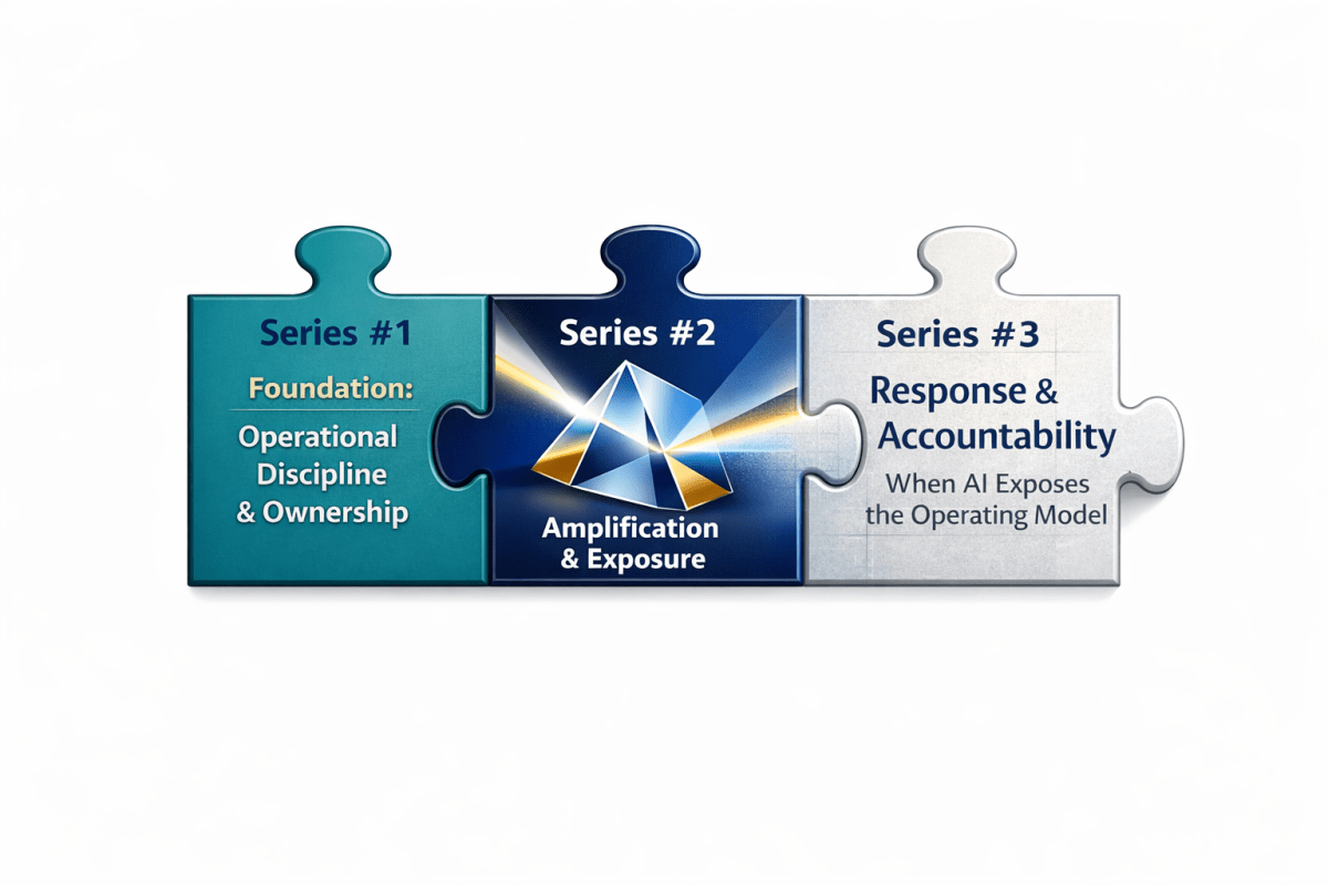 30-Second Perspectives — Series #3 Roadblocks & Challenges: Why AI Exposure Doesn’t Automatically Become Progress In Series #1, we established that AI readiness is not about features, it’s about operational discipline and ownership. In Series #2, we explored how AI acts as a live diagnostic, exposing how decisions, data, and accountability actually work inside the […]