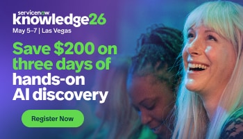 | May 5-7 | ServiceNow Event | Tuesday, May 5 - Thursday, May 7Knowledge26 | Las Vegas, NV, USACuriosity meets community at Knowledge 2026, where you and AI get to work. Explore how the ServiceNow AI Platform accelerates your business reinvention and unlock hundreds of sessions, hands-on labs, AI demos, and CreatorCon activations. |