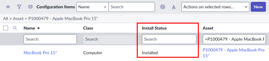- "Install Status" denotes the status of the CI's physical hardware. This field is available for all CI classes, and is synced between the CI and the linked Asset.