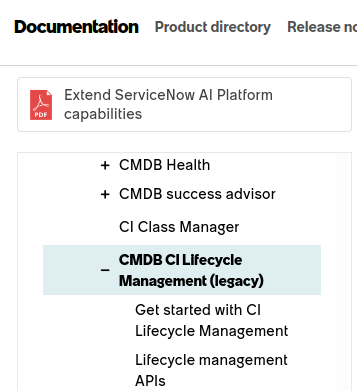 The CI Life Cycle section is now marked as "(legacy)" in the ServiceNow Docs.