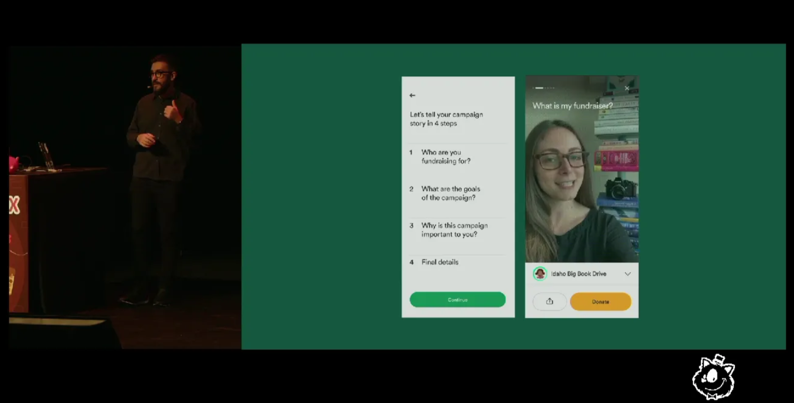 He mentioned the Gofundme project, where they applied a fluid approach to research meaning that design and research ran in parallel, the design informed research and vice versa. Also, insights can come from anyone from the team, not just from researchers. I really liked that they started a book club, everyone read a book about social impact, and they created a Figma file that served as a knowledge hub.