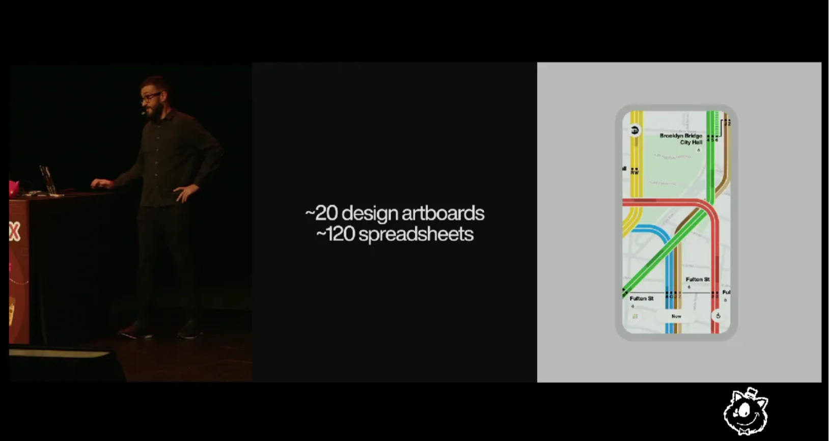 During the New York City Transit project, they created a real-time map of the subway system, which required them to create a lot of vectors and do some math. One of the main design challenges was, “How to clean up complexity?”