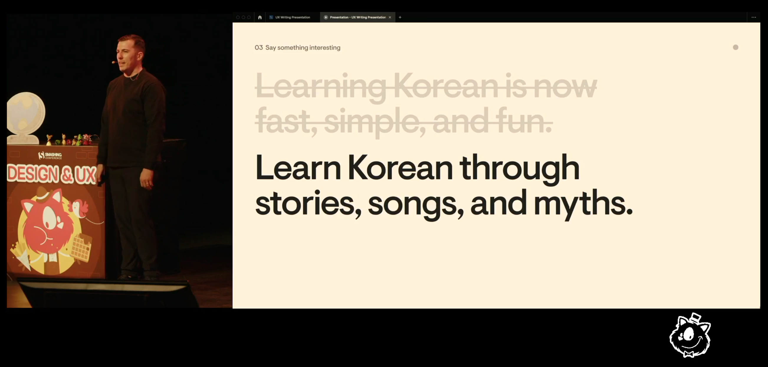 Nick closed his talk by saying that companies should hire writers or content designers since words are part of the user experience.