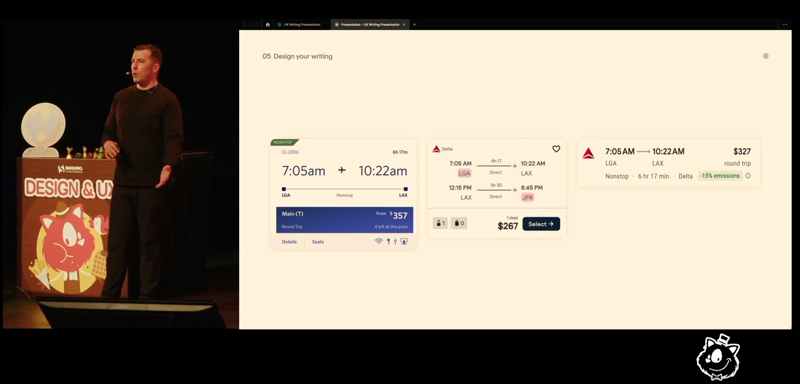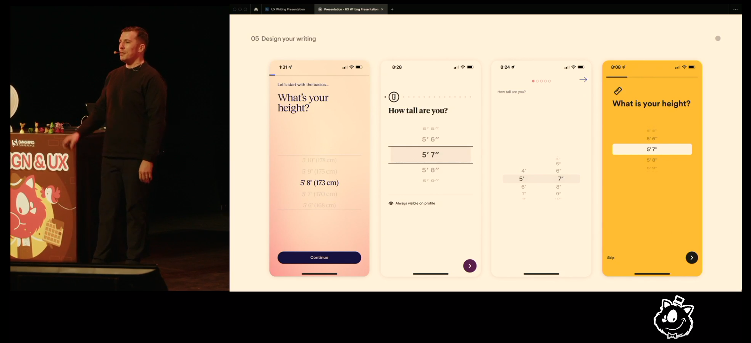 In his talk, Nick DiLallo shared many examples of good and not-so-good UX copies.