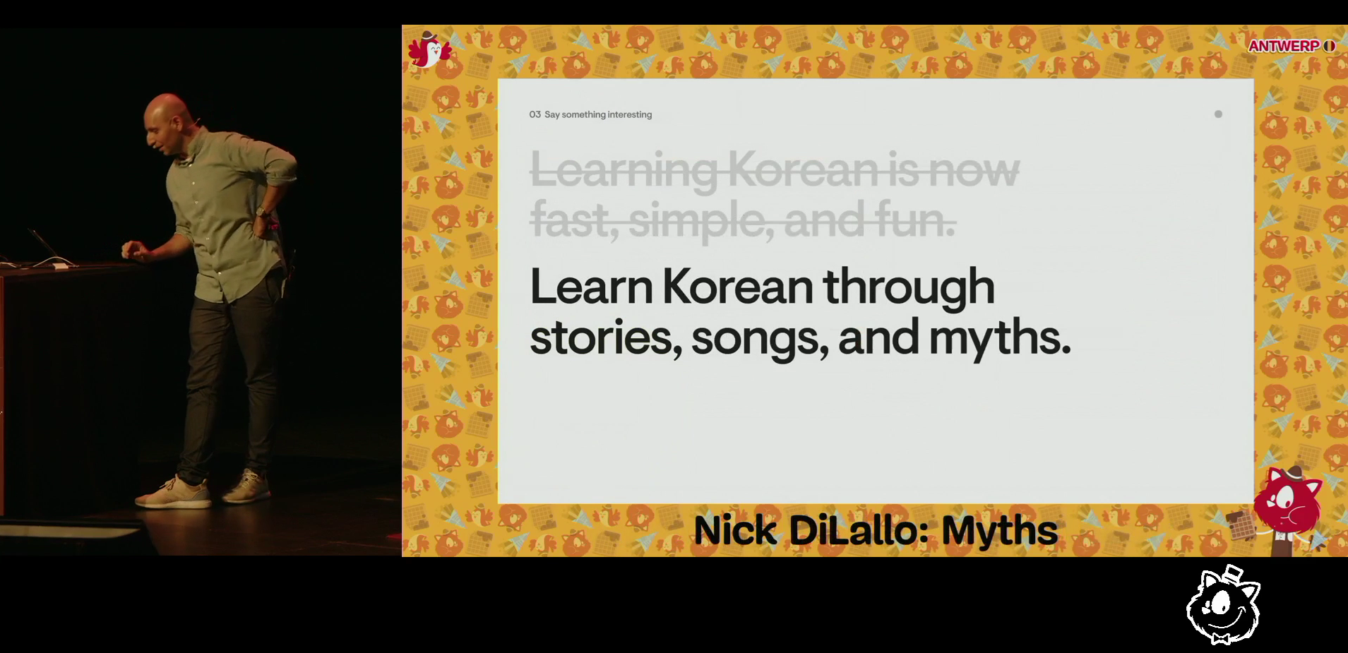 Where does the name “Antwerp” come from? “Hand werpen” or “to throw a hand”. Once upon a time, there was a giant that collected money from everyone passing the river. One time, a soldier came and just cut off the hand of this giant and threw it to the other side, liberating the city. So, the story and the theme were “legends.” For instance, Molly Hellmuth included Bigfoot (Sasquatch), Stéphanie mentioned Prometheus, Nick added the word “myth” to one of his slides, Oliver applied a typeface usually used in fairy tales, Christine mentioned Sisyphus and Kat talked about Pandora’s box.