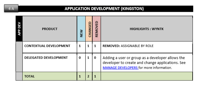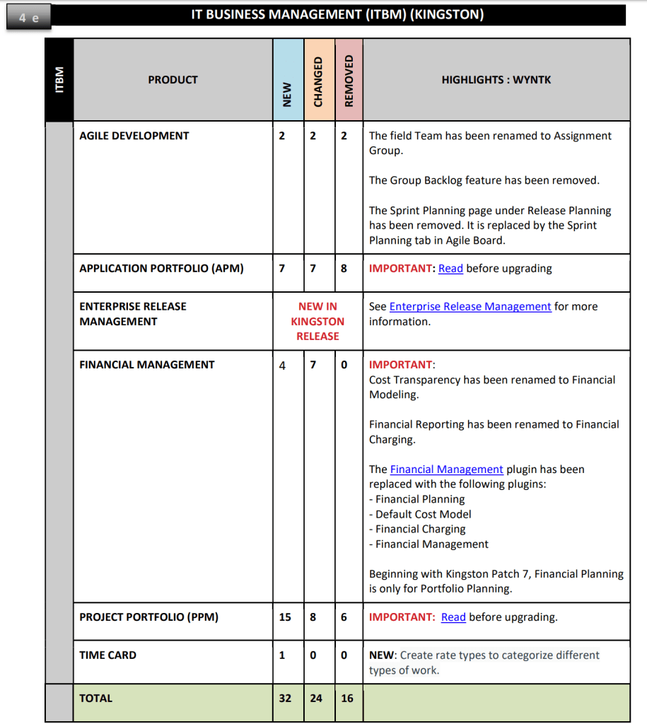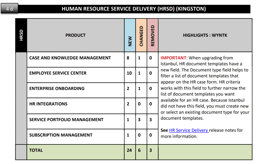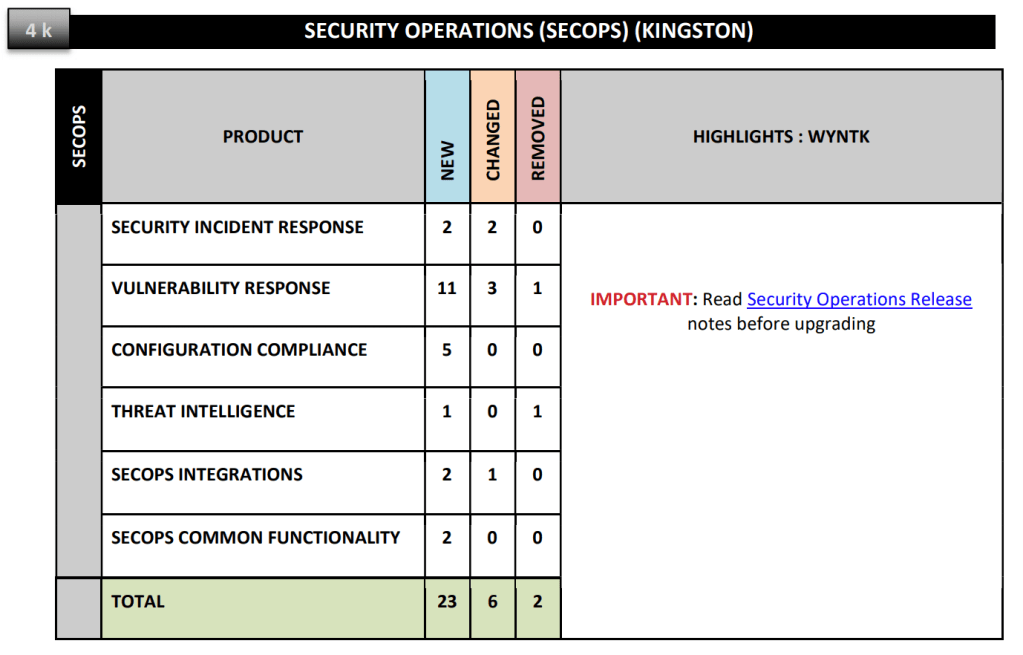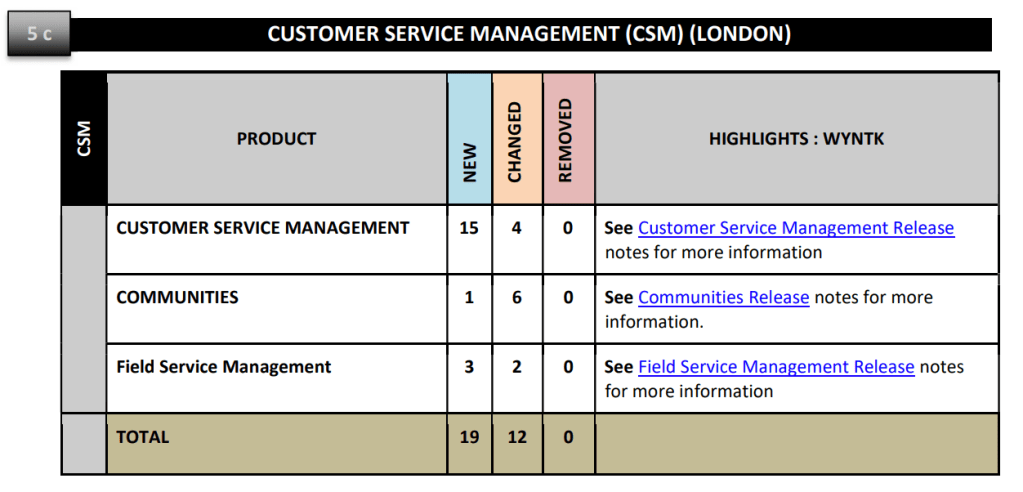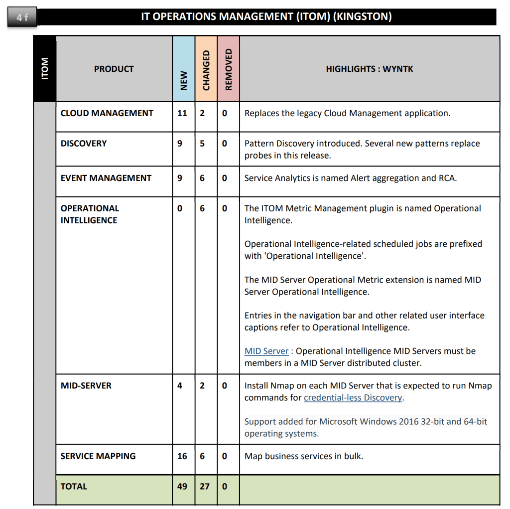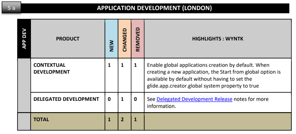 In the Kingston and London family, ServiceNow features and products were introduced, updated, or removed. This is a great resource if for example you need to know if a feature or enhancement that you or your organization have been asking for is now included or if you need to go with plan B. However, its not ideal for understanding the differences between release versions.